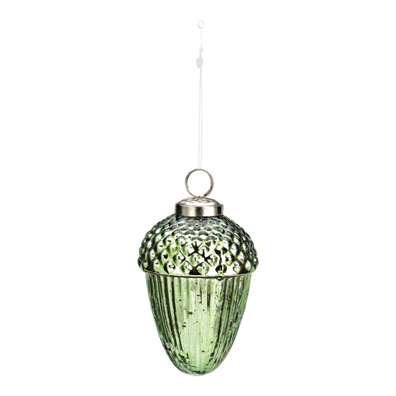 Vianočná ozdoba žaluď 11 cm - zelená farba, sklo