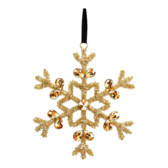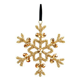 Vianočná ozdoba zlatá snehová vločka, priemer 13 cm (kov, sklo)
