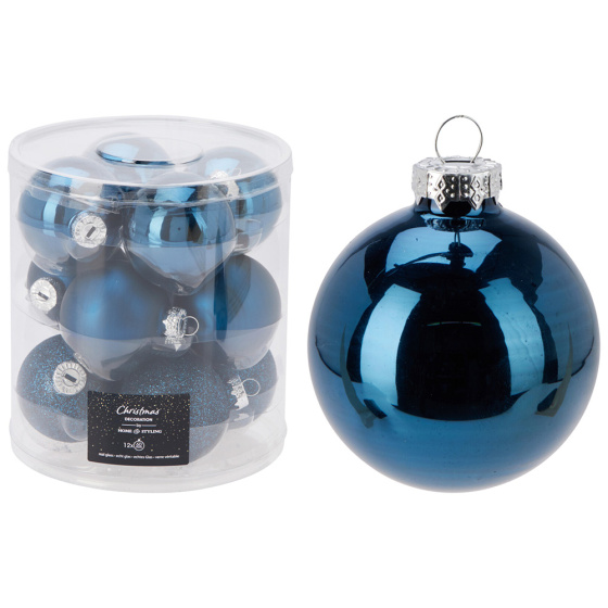 Vianočné gule sklenené 60 mm - modré (set 12 ks)