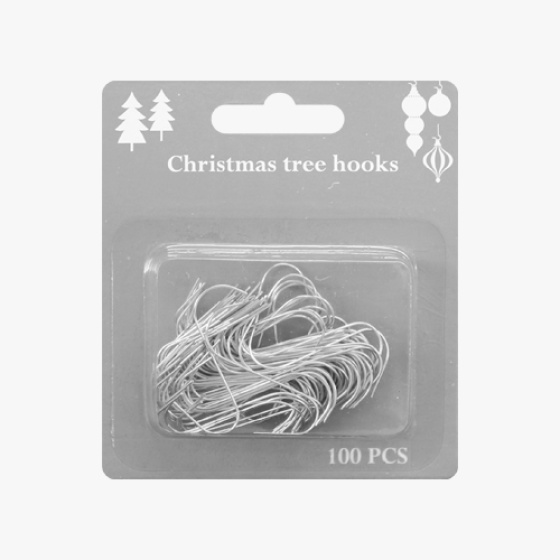 100 kusov kovových vianočných háčikov na vešanie vianočných gulí a ostatných ozdôb na vianočný stromček.