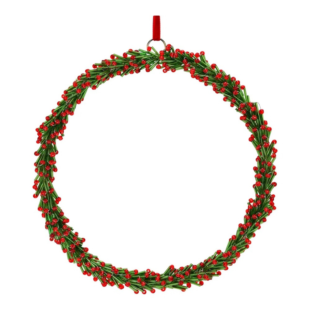 Vianočný veniec sklenený 20 cm na zavesenie, zeleno-červený kruh
