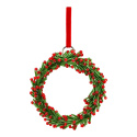 Vianočný veniec sklenený 9 cm na zavesenie, zeleno-červený kruh