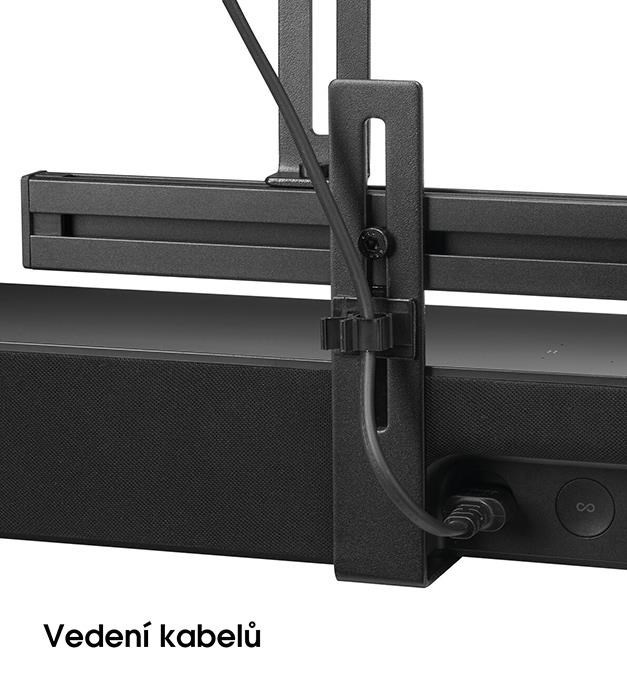 SOUND 3550 sa ľahko prispôsobí na uchytenie soundbarov rôznych veľkostí a tvarov. Nezáleží, či majú otvory na uchytenie na zadnej alebo spodnej strane. Vyrobený je z kvalitnej ocele a hliníka s prémiovým povrchom.