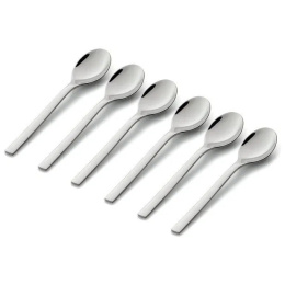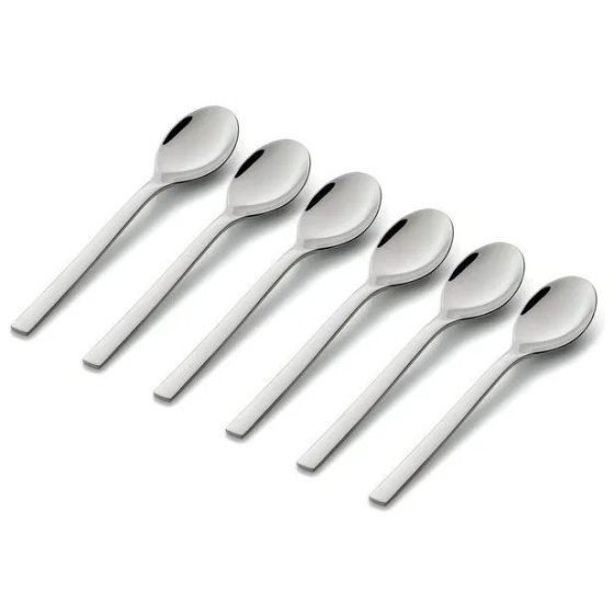 Elegancia a funkčnosť pre váš kávový rituál. Sada kávových lyžičiek z kolekcie Nuova predstavuje dokonalú rovnováhu medzi nadčasovým dizajnom a praktickým využitím. Vďaka svojej optimálnej veľkosti sú ideálne na miešanie kávy, čaju, ale aj na podávanie dezertov.