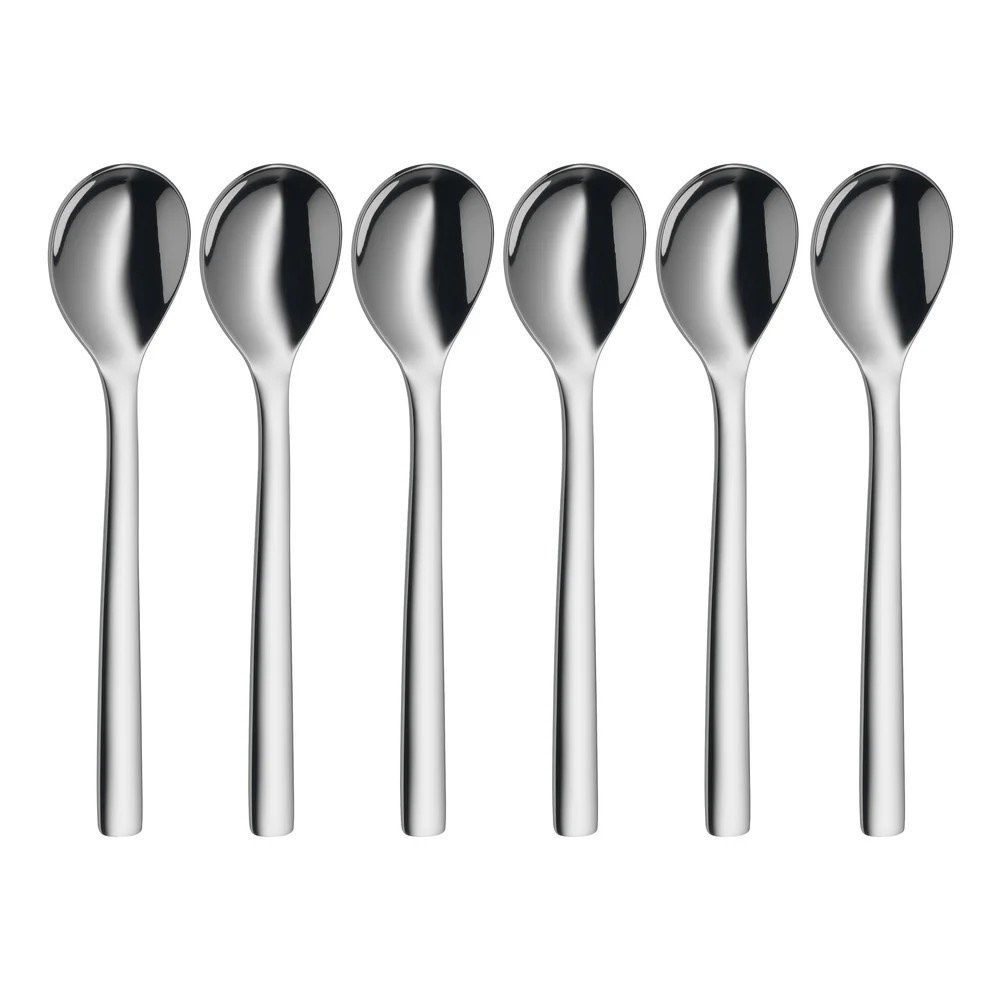 Dokonalý pôžitok z vajíčok namäkko. Sada lyžičiek na vajcia z kolekcie Nuova je navrhnutá s ohľadom na špecifický tvar a veľkosť vajíčok. Vďaka svojej širokej a zaoblenej prednej časti umožňujú tieto lyžičky jednoduché vybratie žĺtka aj bielka zo škrupiny.
