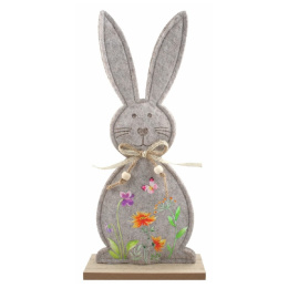 Zajac s motívom lúky z plste 14 x 30 x 5 cm na postavenie