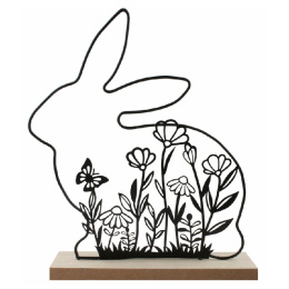 Tento dekoratívny motív zobrazuje siluetu zajaca v jednoduchom, no výraznom dizajne, vhodnom pre jarné, veľkonočné aj celoročné aranžmány.