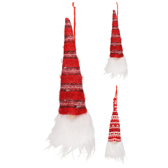 Škriatok s bradou a dlhou čiapkou, červená stuha na zavesenie.