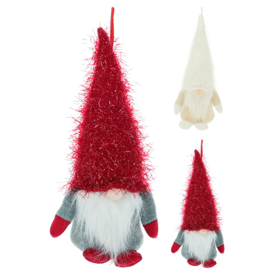 Škriatok s bradou a dlhou čiapkou, stuha na zavesenie.