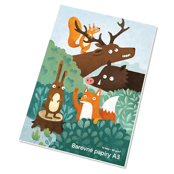 Farebný papier v zložke ako kreatívny materiál. V balení nájdete 10 farieb:žltá, oranžová, ružová, červená, modrá, zelená, fialová, šedá, hnedá a čierna. Gramáž minimálne: 80g/m2 Formát: A3 1 ks = 1 zložka Zložka = 10 farebných papierov Balenie: 20 zložiek