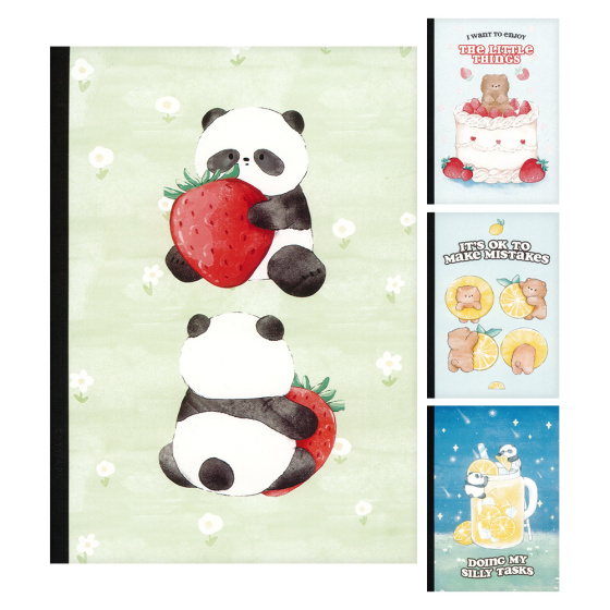 Linajkový zošit vo formáte B5 lepený - 4 dizajny Panda a Medveď.
