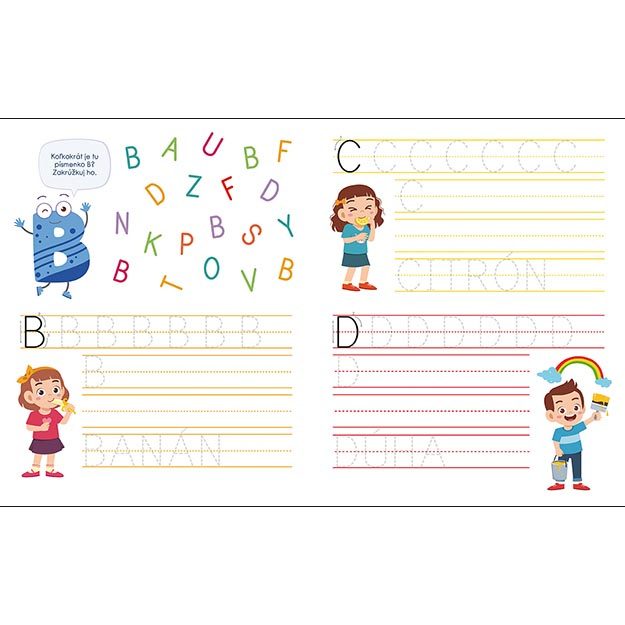 Titul obsahuje 22 stierateľných strán s úlohami na trénovanie predškolských zručností.