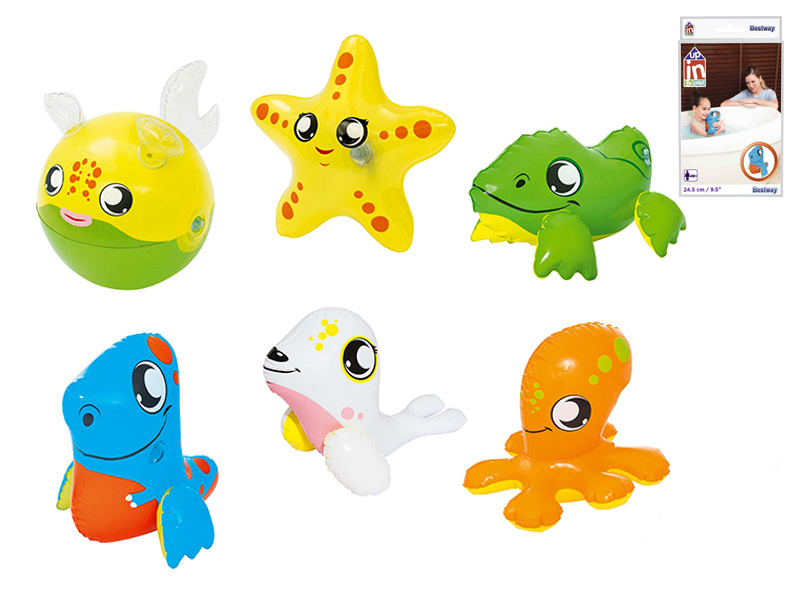 Nafukovacie zvieratká sú skvelým spoločníkom pre deti do bazéna i do vane. Zvieratká merajú 22-34 cm. Sú vhodné od 4 mesiacov. Vyberte si zvieratko (ryba, hviezdica, chobotnica, tuleň, mrož, žaba) a zábava môže začať.