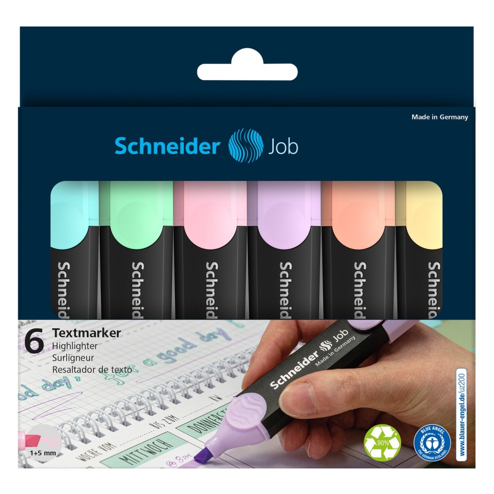 Schneider Job vysokokvalitné zvýrazňovače v sade 6 ks jediný zvýrazňovač, ktorý v Nemecku získal prestížne ocenenie Blue Angel.