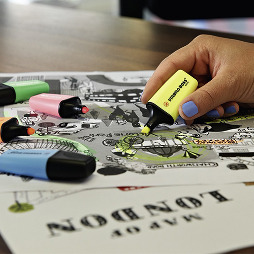 STABILO BOSS MINI. Zvýrazňovače pre všetkých, ktorí si myslia, že mini je roztomilý, zábavný alebo praktický. Klasický STABILO BOSS ORIGINAL v mini formáte: môžete sa spoľahnúť na plný výkon. Zmestí sa do najmenšieho vrecka. Technológia STABILO Anti-Dry-Out: 4 hodiny ochrany proti vysychaniu pri sústredenej práci. Kvalita STABILO v prevedení, pohodlný pri nosení a písaní. Atrament na vodnej báze. 2 šírky čiar 2 + 5 mm.