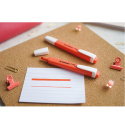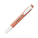 Telo zvýrazňovača je úzke a k tomu má aj klips. Vďaka týmto obom veciam sa hodí ako dobrý partner na cesty. Farba je jemná korálovočervená.